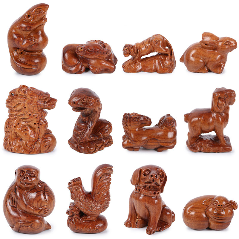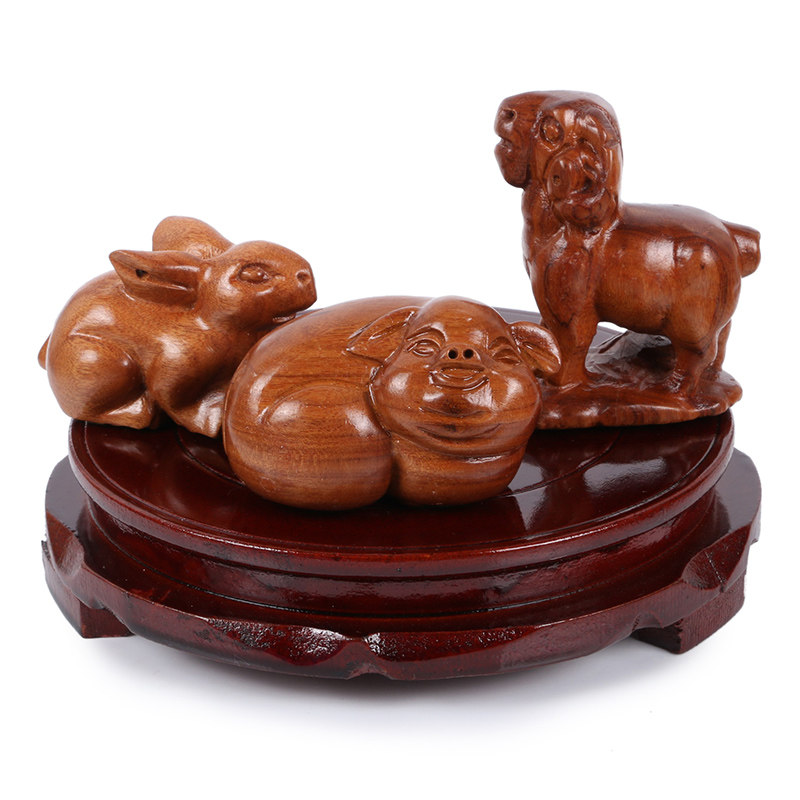 淘宝花梨木生肖鼠龙猴猪兔羊马虎狗蛇鸡牛三合贵人摆件六合生肖手把件
