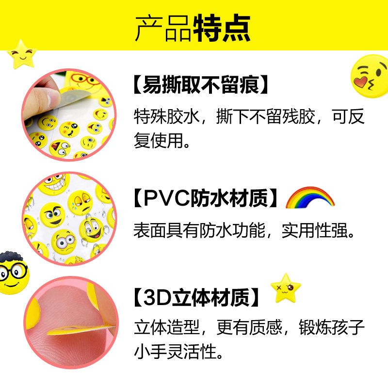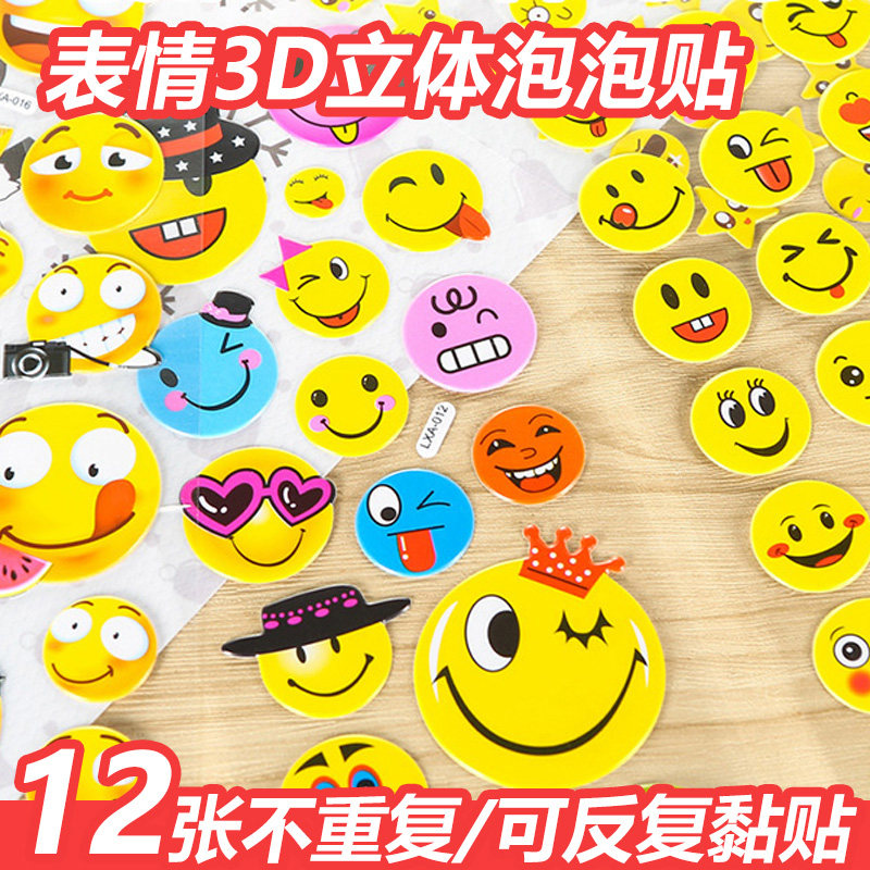 淘宝儿童奖励笑脸贴纸pvc表情泡泡贴纸幼儿园贴画表情包卡通宝宝教师表扬学生哭脸笑脸贴纸3D立体贴纸装饰可爱