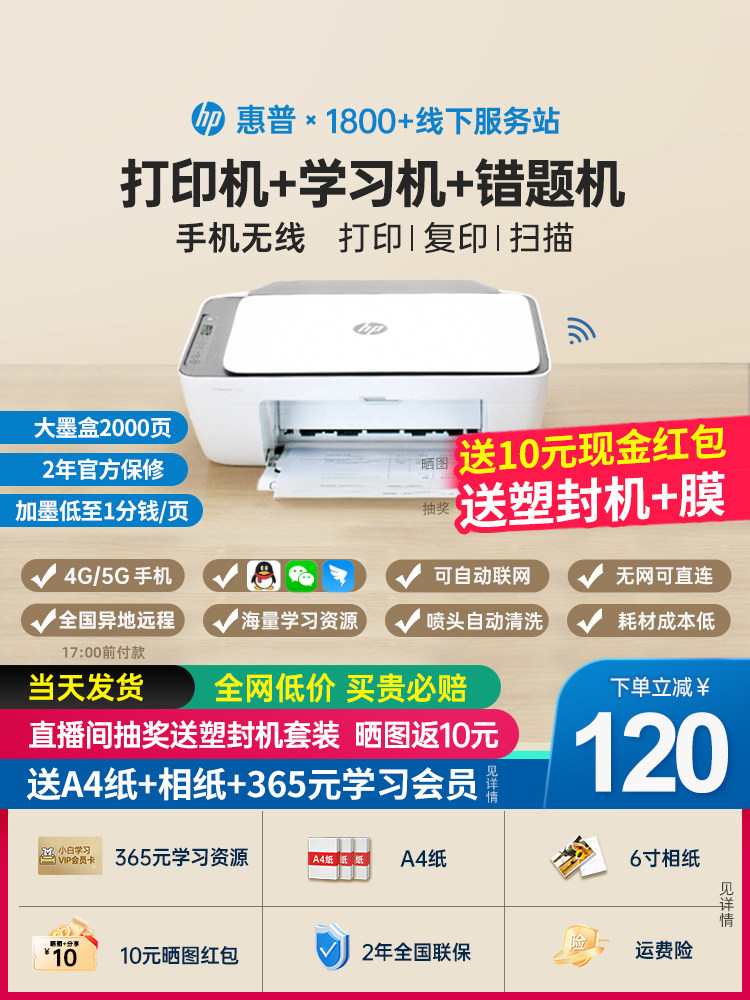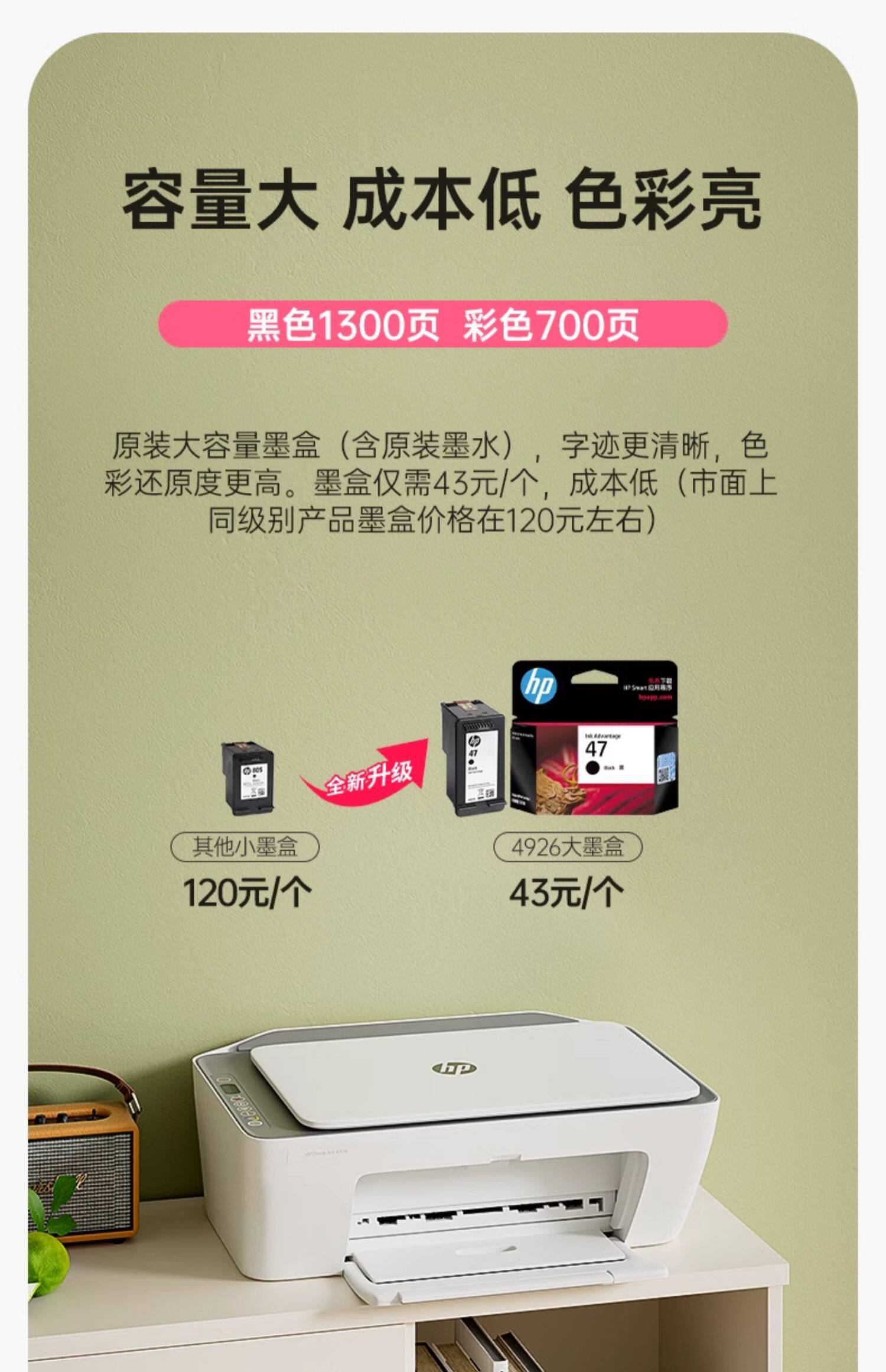 淘宝HP惠普4926彩色打印机小型家用复印扫描一体机可连接手机无线多功能学生家庭宿舍A4办公专用喷墨照片蓝牙2723