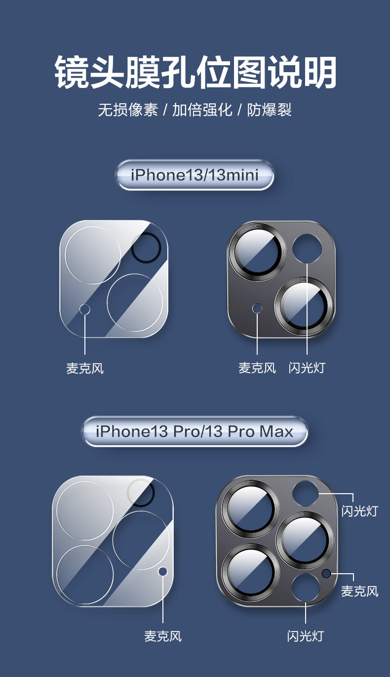 天猫闪魔适用苹果13镜头膜iPhone13pro手机14Promax后置摄像头钢化保护12镜头贴十三一体全包11膜14pro新款pm盖ip