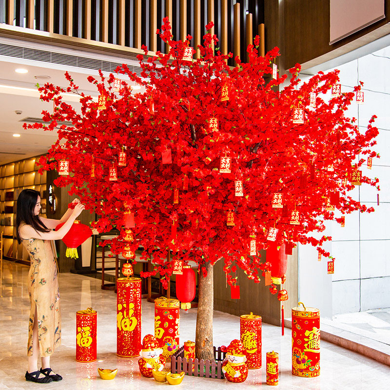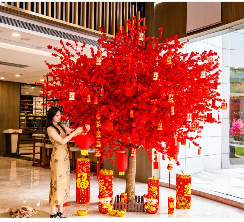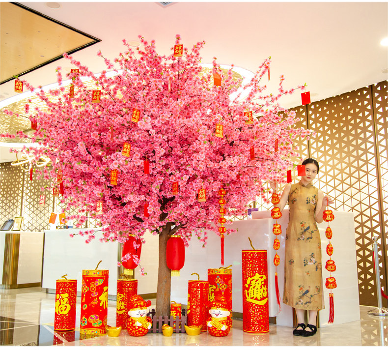 淘宝仿真桃花树新年大型许愿树红包祈福树梅花树假桃树室内外装饰商场